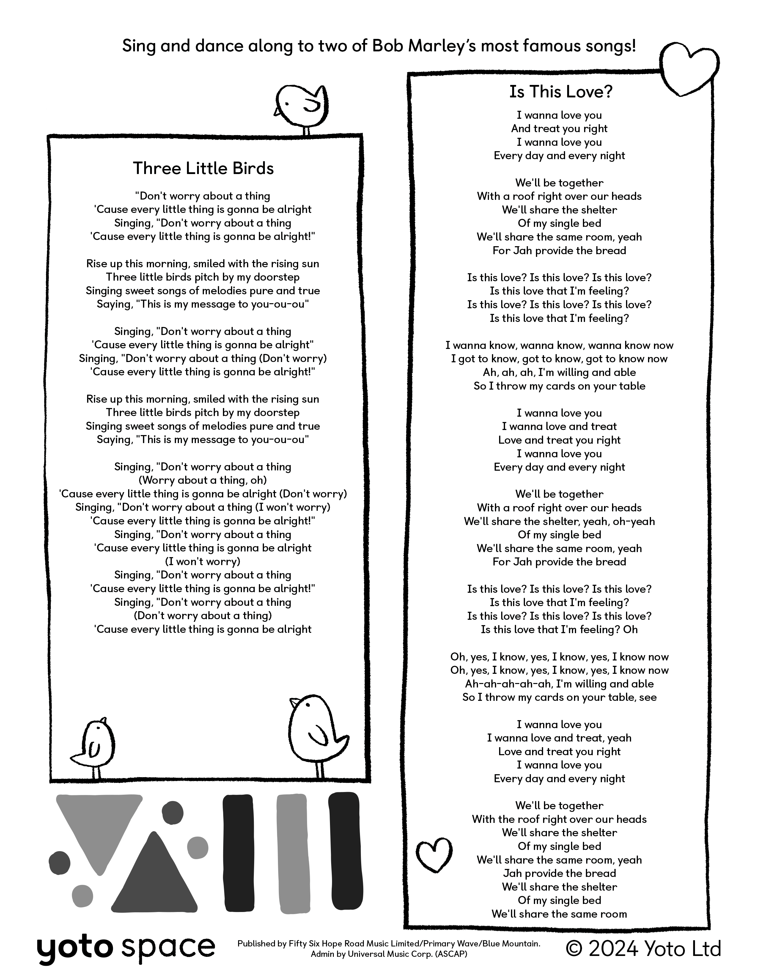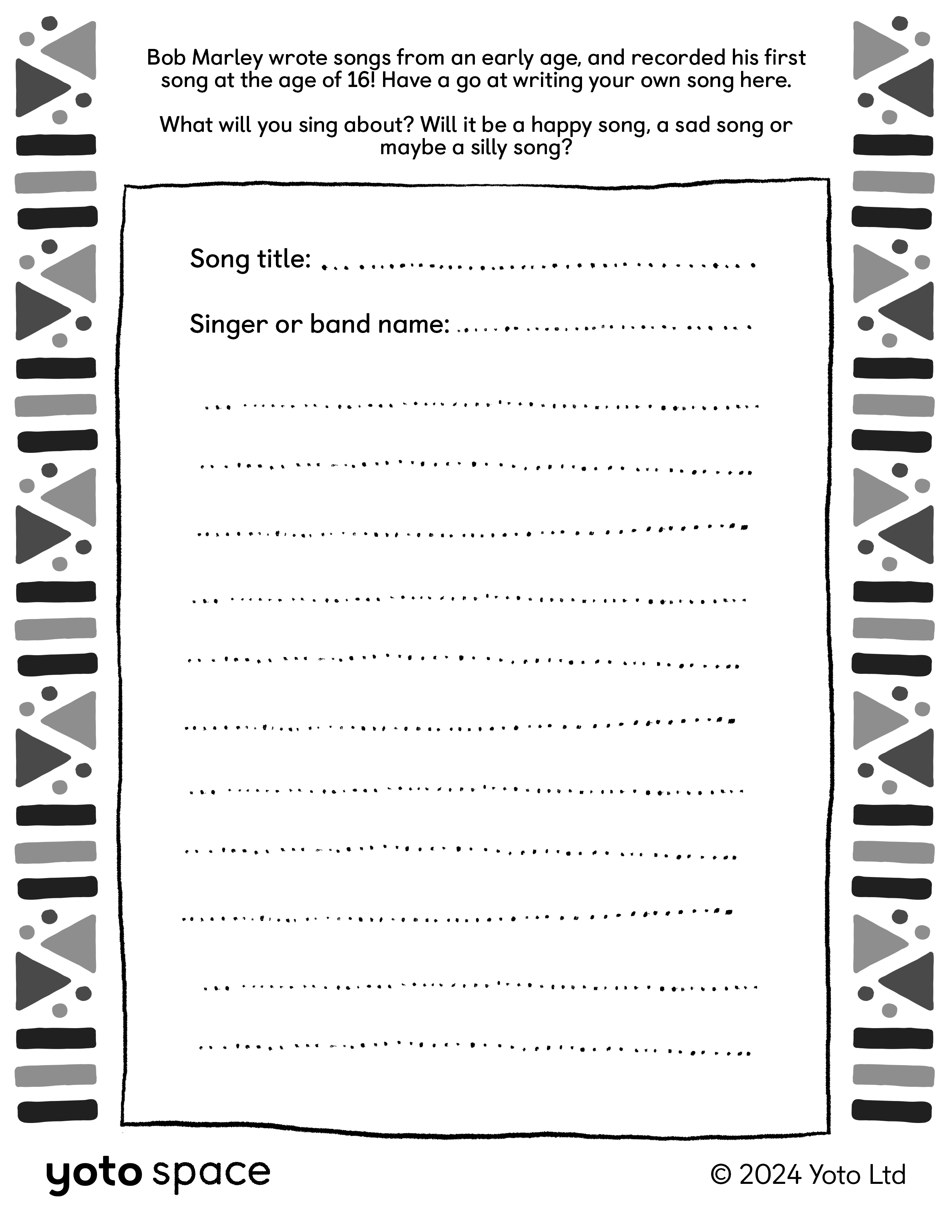 Songwriting worksheets, coloring pages and more - here are some free activities your kids can do while they bop along to those reggae beats.