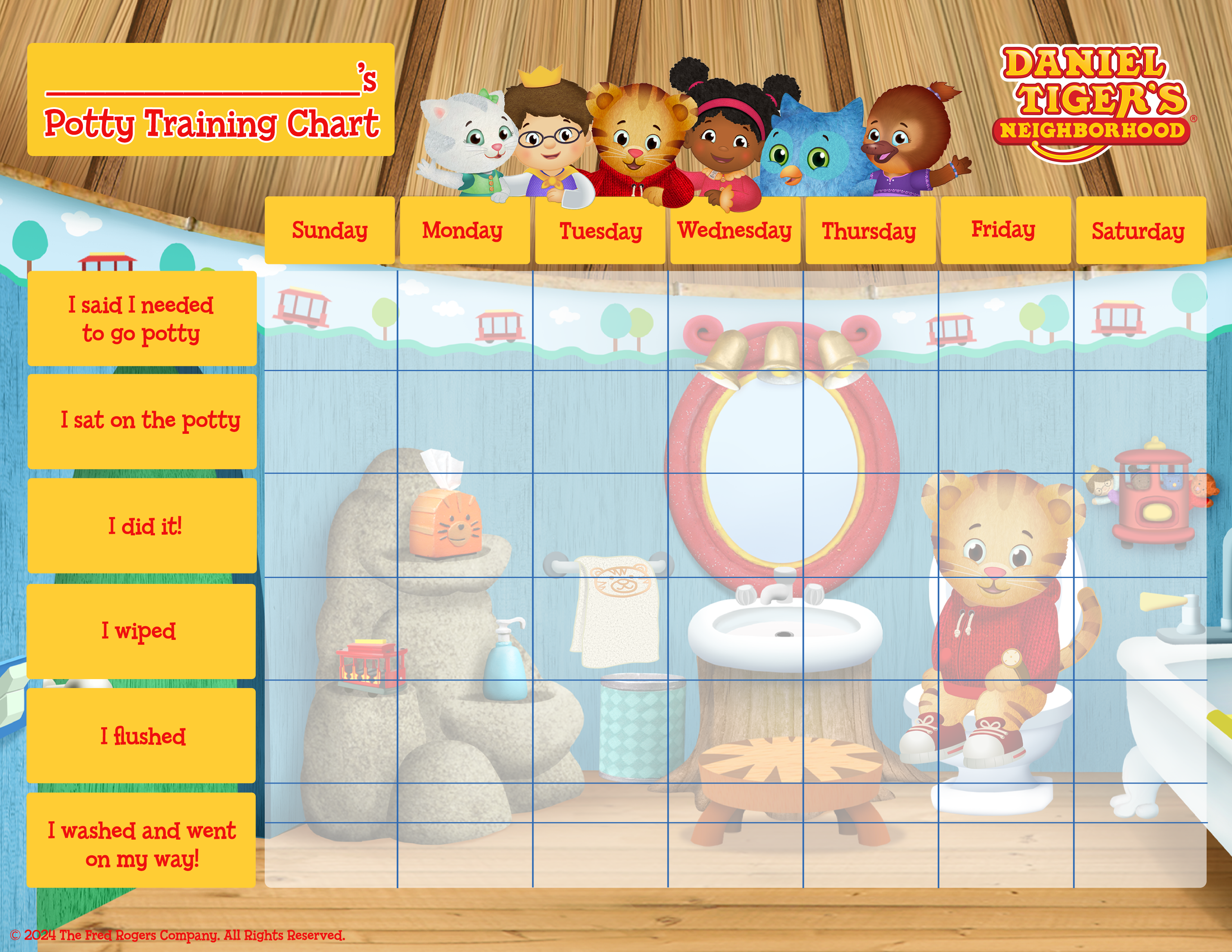 Make potty training fun with a Daniel Tiger-themed training chart to accompany Daniel Tiger's Neighborhood - Potty Time.