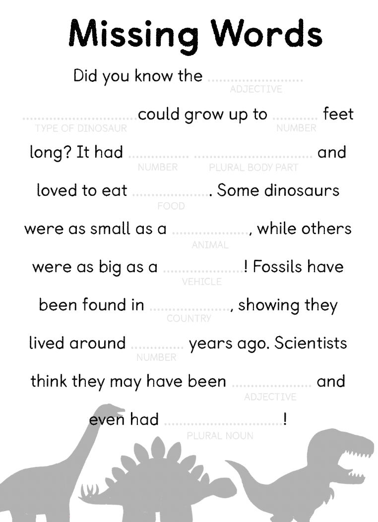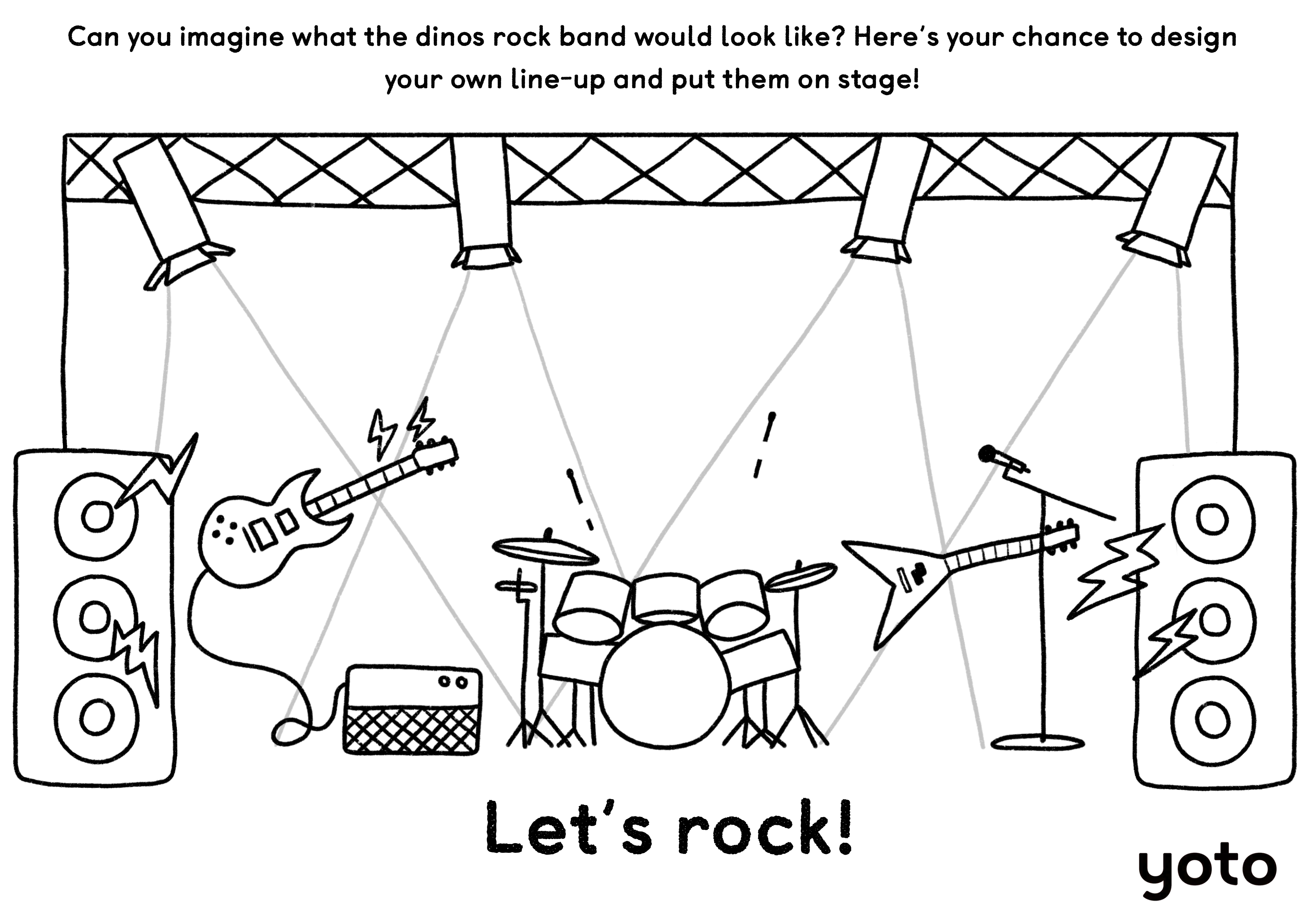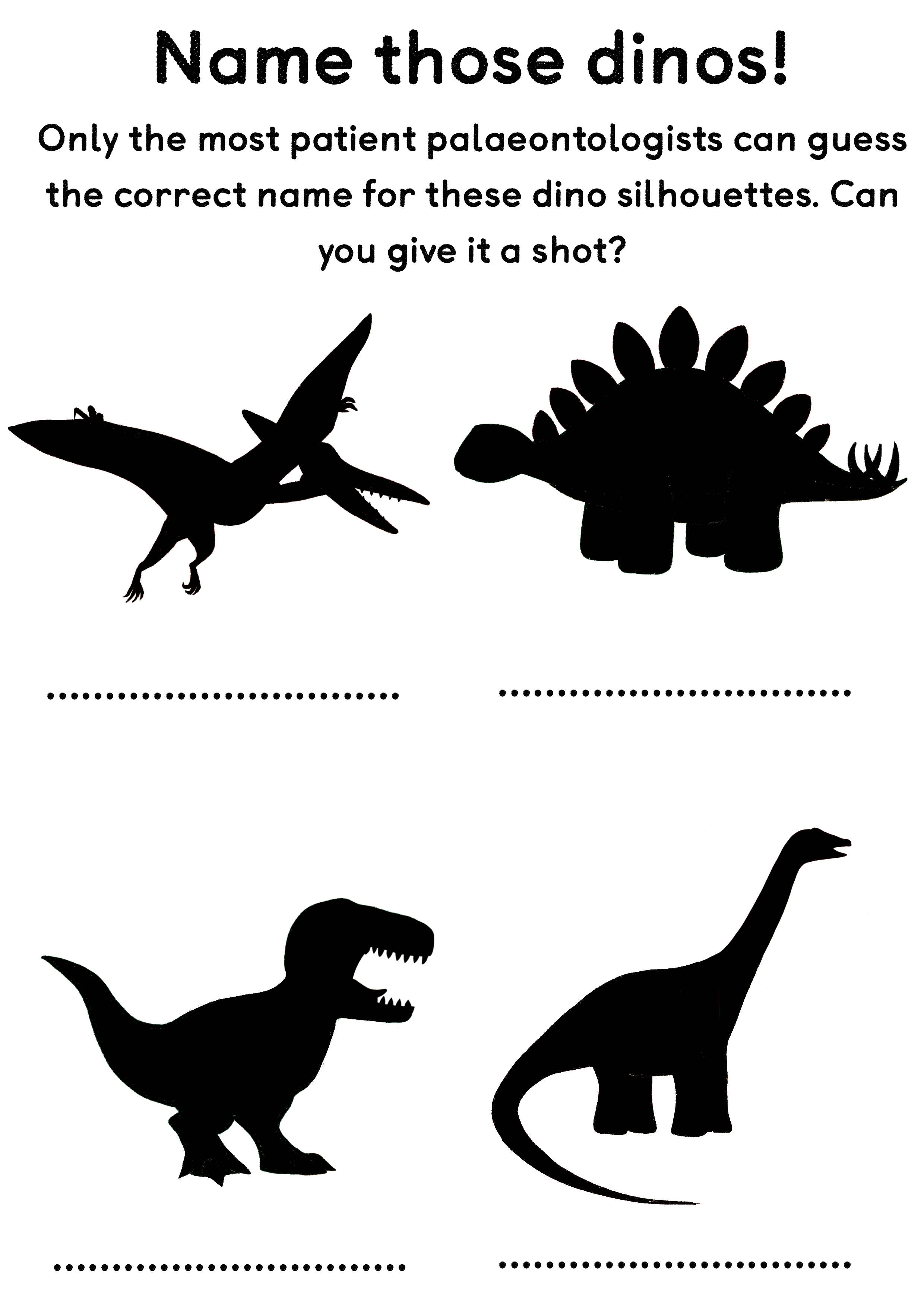 We’ve got spaces for some seriously silly wordplay, a dinosaur silhouette matching game… and for those about to rock there’s a chance to design their very own dinosaur band!