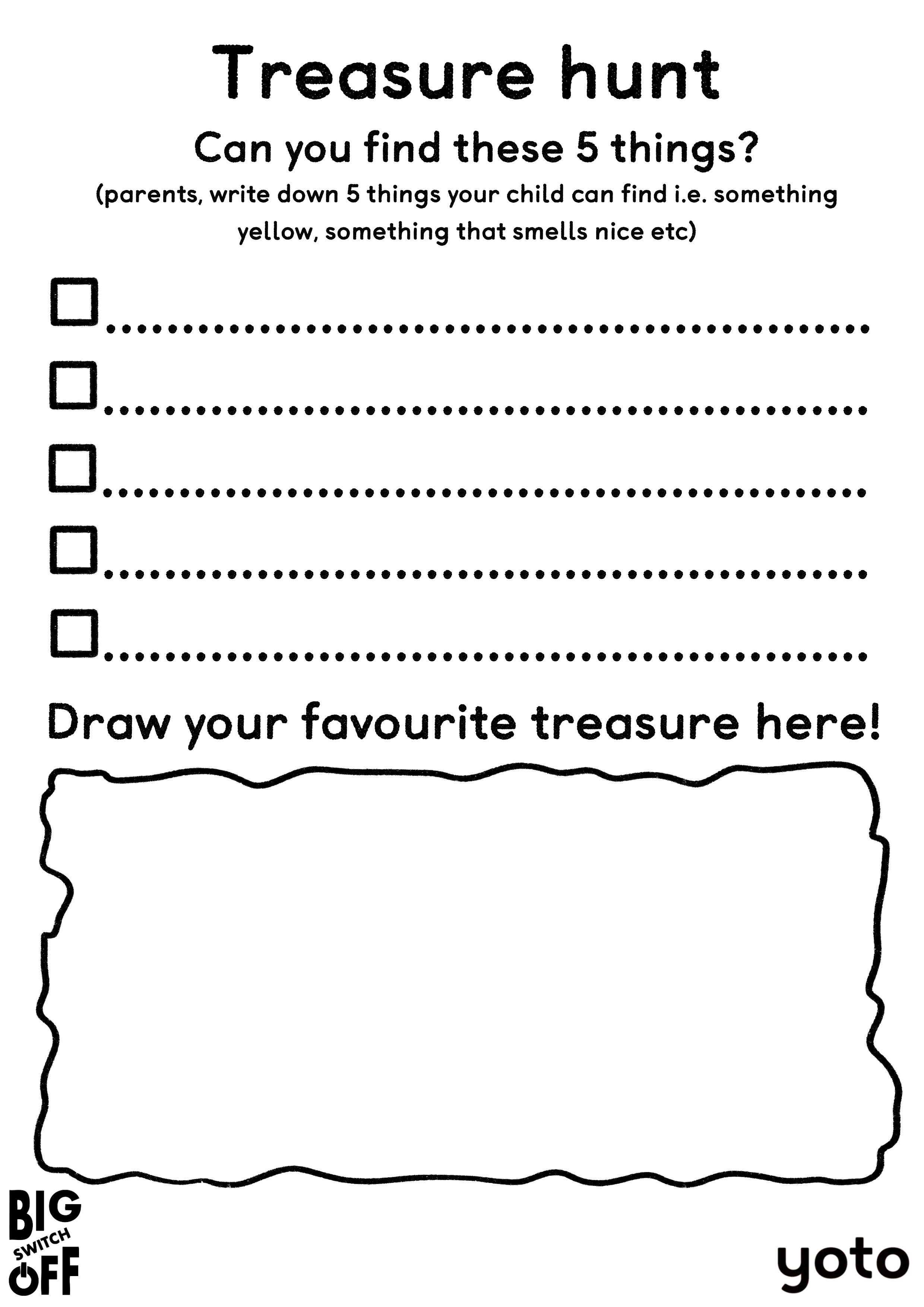 That’s where our free-to-download activity sheets come in. Our Switch Off exclusive colouring sheet and treasure hunt aren’t just ways to pass the time — they’ll also spark creativity, connection and independent play.