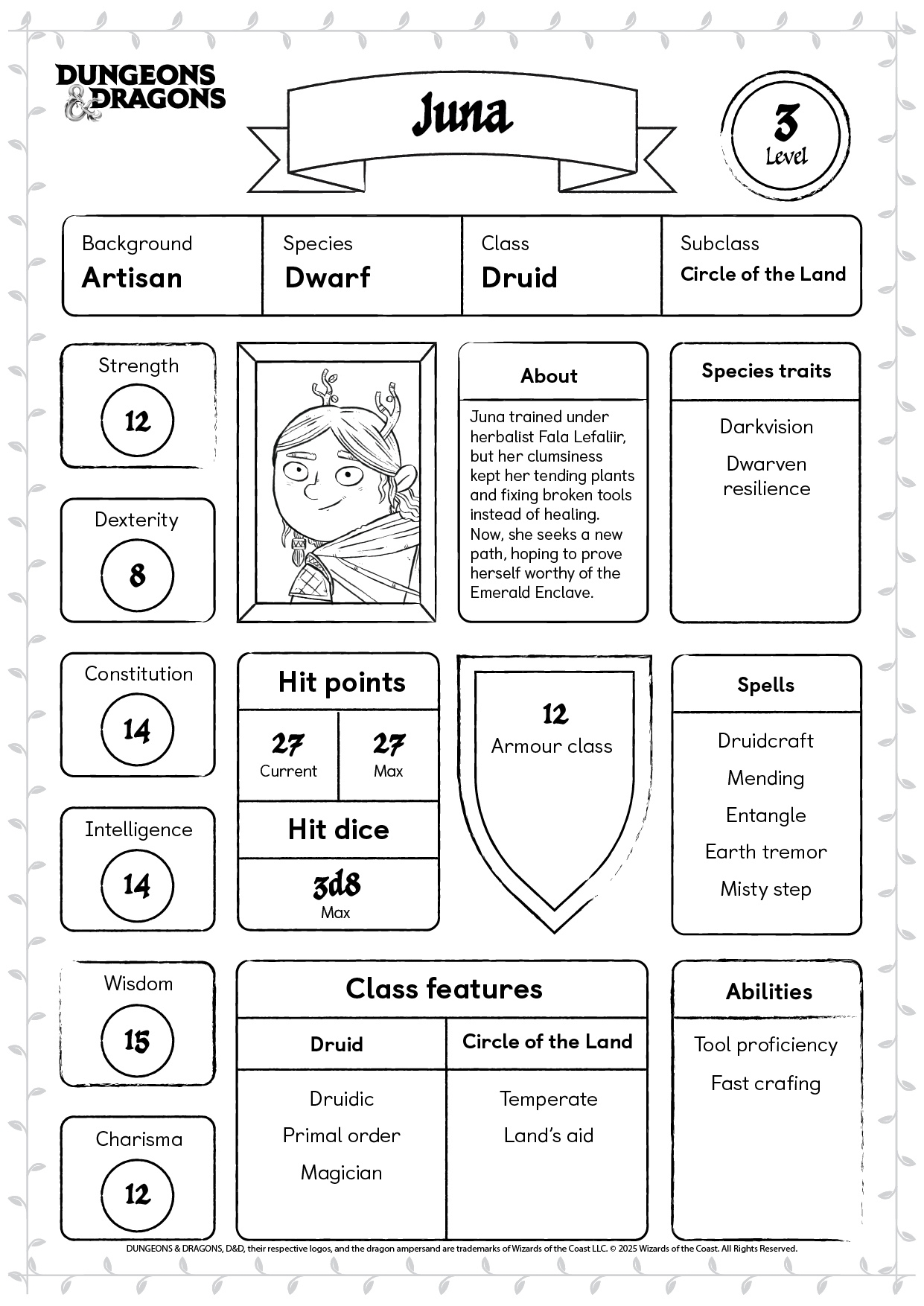 Character sheet