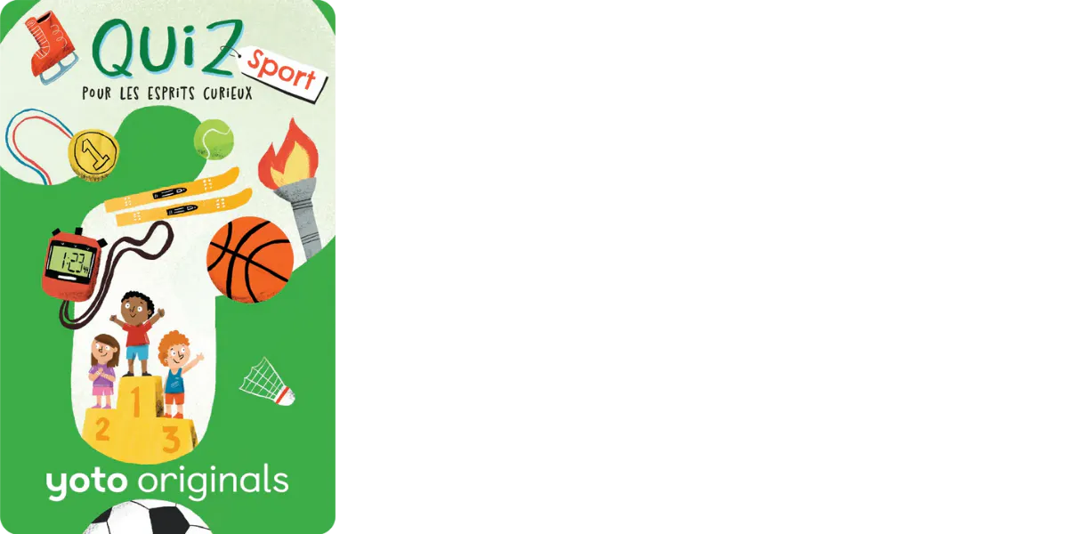 Au programme de ce nouveau quiz audio Yoto : 100 questions et 100 réponses pour tester vos connaissances et devenir de véritables spécialistes du monde sportif. Ici, pas de routine ! Les questions ne sont pas simplement rangées par discipline, mais par catégories thématiques surprenantes qui stimulent la réflexion.