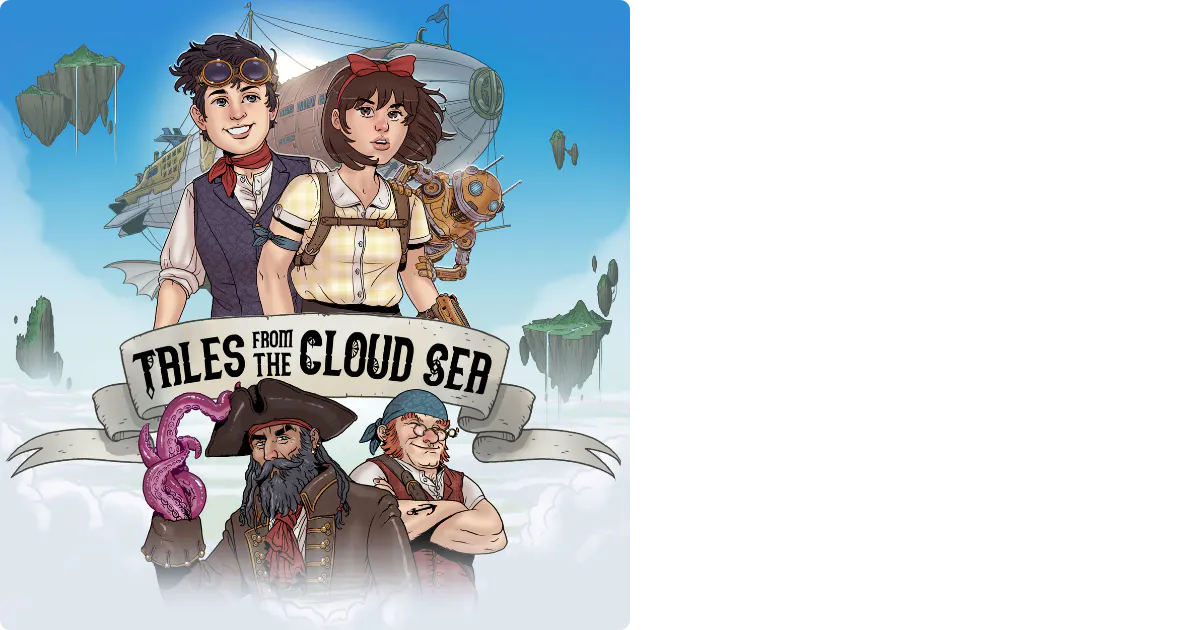 When Amelia and Arthur discover a secret in the attic, they're transported to a parallel world of sky islands, pirate airships, steam-powered robots, and lots of laughs. TALES FROM THE CLOUD SEA is made up on the spotāno script, no plan, no rules! The best part is, kids from Earth (you!) decide where The Skytanic sails next. Join Amelia, Arthur, Captain Squidhand, first-mate Dobbins, their adorable robot Cranklin, and the strange sky island denizens on a quest for massive booty (treasure!) and the secrets of The Cloud Sea.