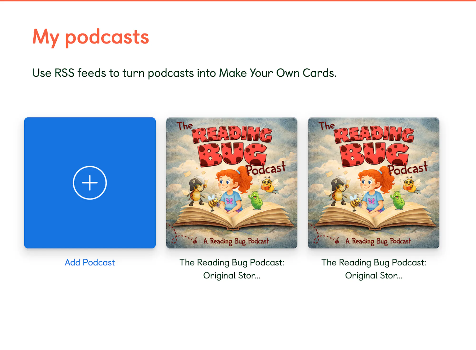 Hi! I'm trying to add "The Reading Bug Podcast" to a MYU card. I'm following the instructions here: https://support.yotoplay.com/en-US/make-a-card-from-podcasts-that-are-not-in-the-yoto-app-46986. I get to the point that is in the picture above and I cannot get beyond this. I don't see the podcast in the app anywhere. Could anyone help me figure out how to get it on a card from here? Thank you!!
