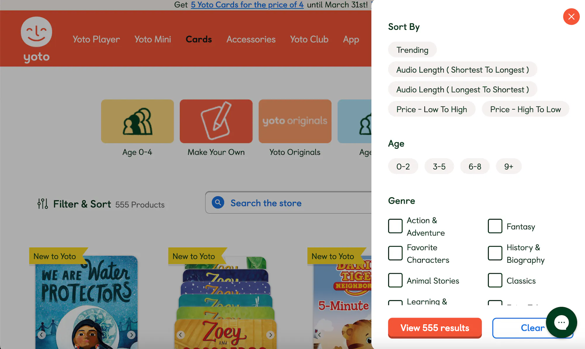 We've been testing this for a while and excited that it's rolled out on all Yoto websites. The main features are: