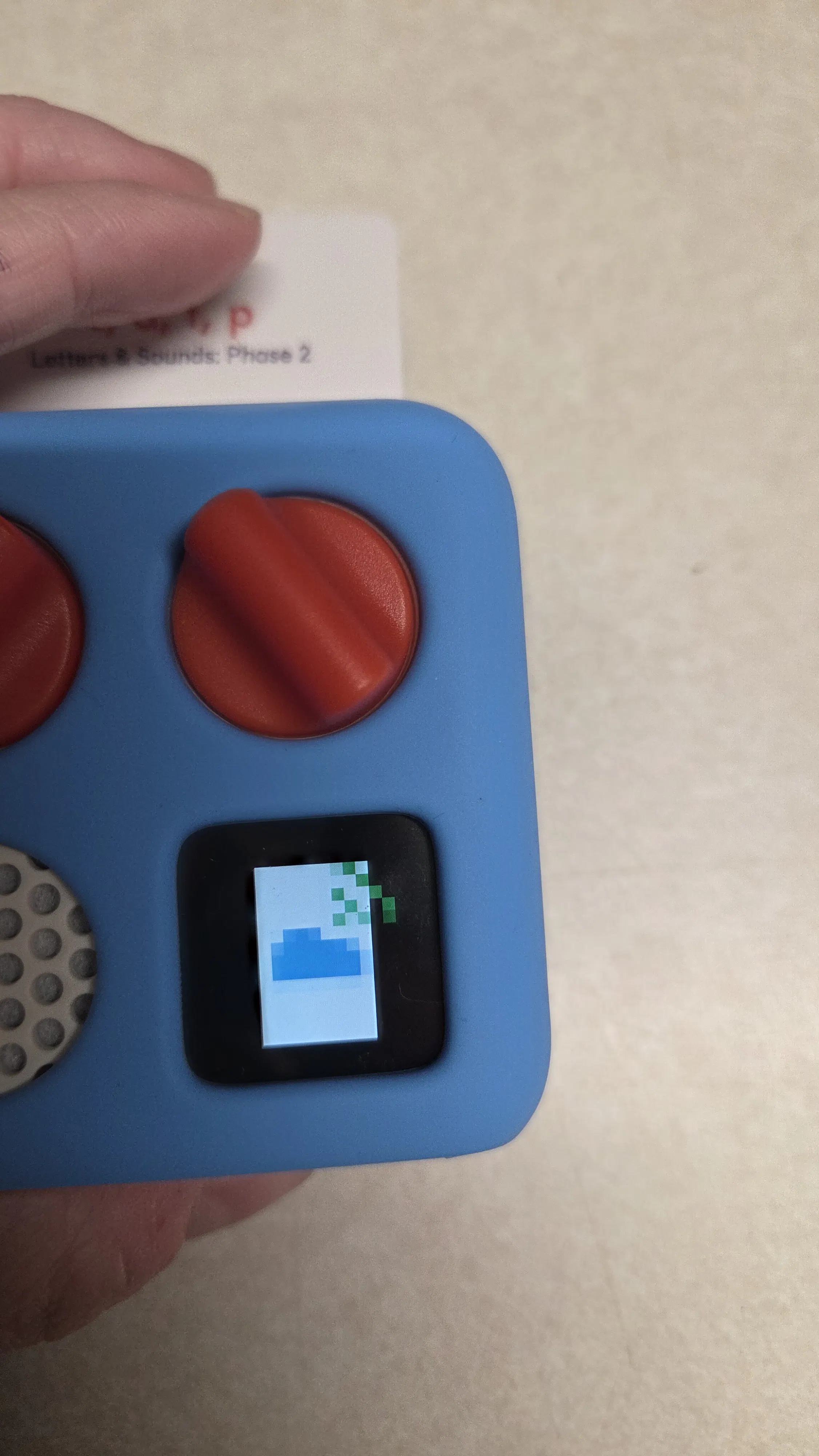I'm a librarian at a small library that recently received a community grant to purchase several mini Yotos and a number of cards. We're a little confused about how the Yoto players will work for our patrons and need to figure it out so we can write up instructions. We currently have them connected to our library account. Do they have to download the app and add the player to their account when they check them out before using them? I took them both home to test and one of them gave me this icon on the display whenever I tried to play a library owned card or one of my son's. Any idea why? The cards worked on the other library Yoto player.